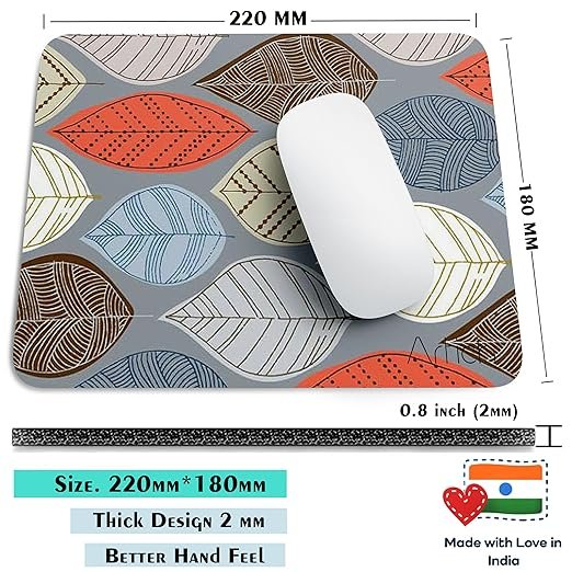 Autumn leaves design brings cozy vibes to your setup! Super soft Lycra surface for silky smooth tracking + non-slip rubber base. Perfect for office/laptop/gaming (40×30 cm), stitched edges, water-resistant.