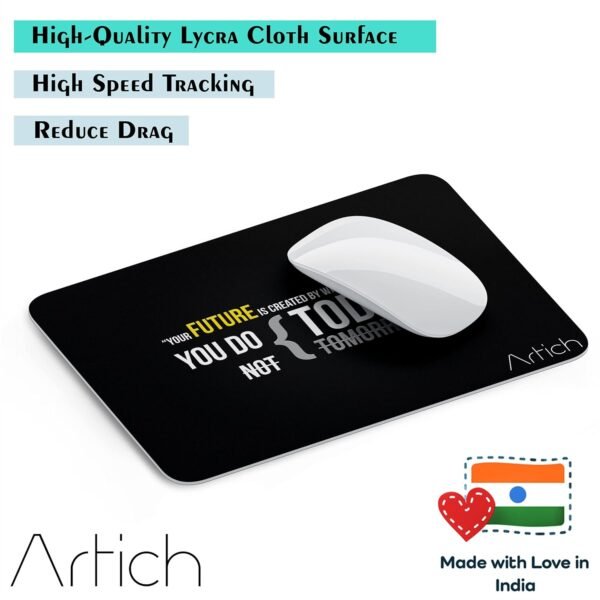 Eye-catching rectangular mouse pad with “Coding for Future” graphics symbolizing tech innovation and programming. Offers smooth gliding, non-slip stability, and easy-to-clean durability for prolonged use. Vibrant print resists fading and supports all mouse sensors.