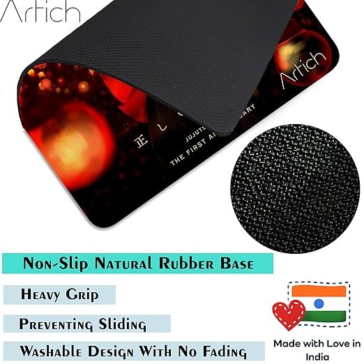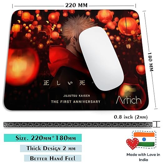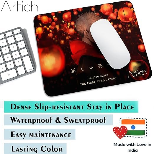Rectangular mouse pad capturing Yuji’s intense energy surrounded by fiery lanterns from Jujutsu Kaisen, perfect for anime enthusiasts’ desks. Delivers precise tracking, stable grip, and easy-to-clean durability for daily use in work or gaming setups. Vibrant, fade-resistant artwork optimizes all mouse sensors.
