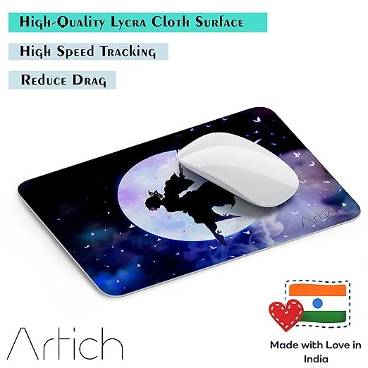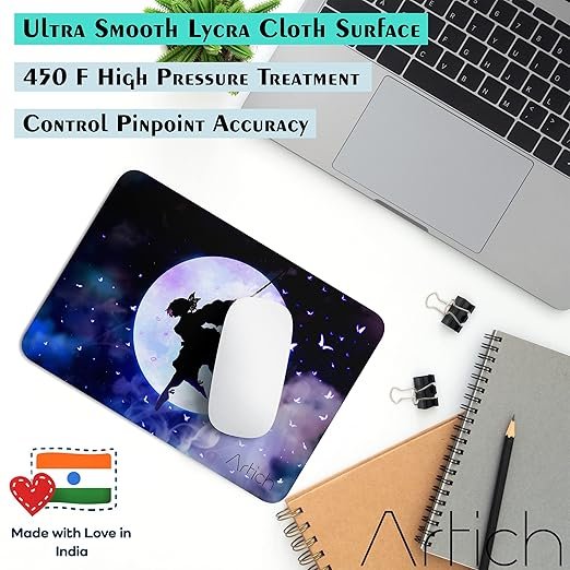 Rectangular mouse pad with ethereal Moonlit Shinobu Kocho artwork capturing the Demon Slayer character’s graceful nighttime presence in soft purples and silvers. Ensures precise gliding, firm grip, and washable durability ideal for fans during work or play. Vibrant print optimizes all mouse sensors.